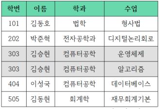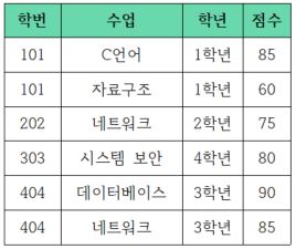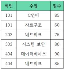 위의 테이블의 기본키는 {'학번', '수업'}입니다