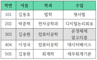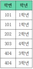 위의 테이블의 기본키는 '학번' 속성을 기본키로 하고 있습니다