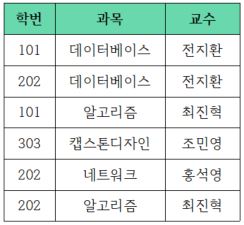 그리고 새로 신설하는 과목도 이 테이블에 저장시키고