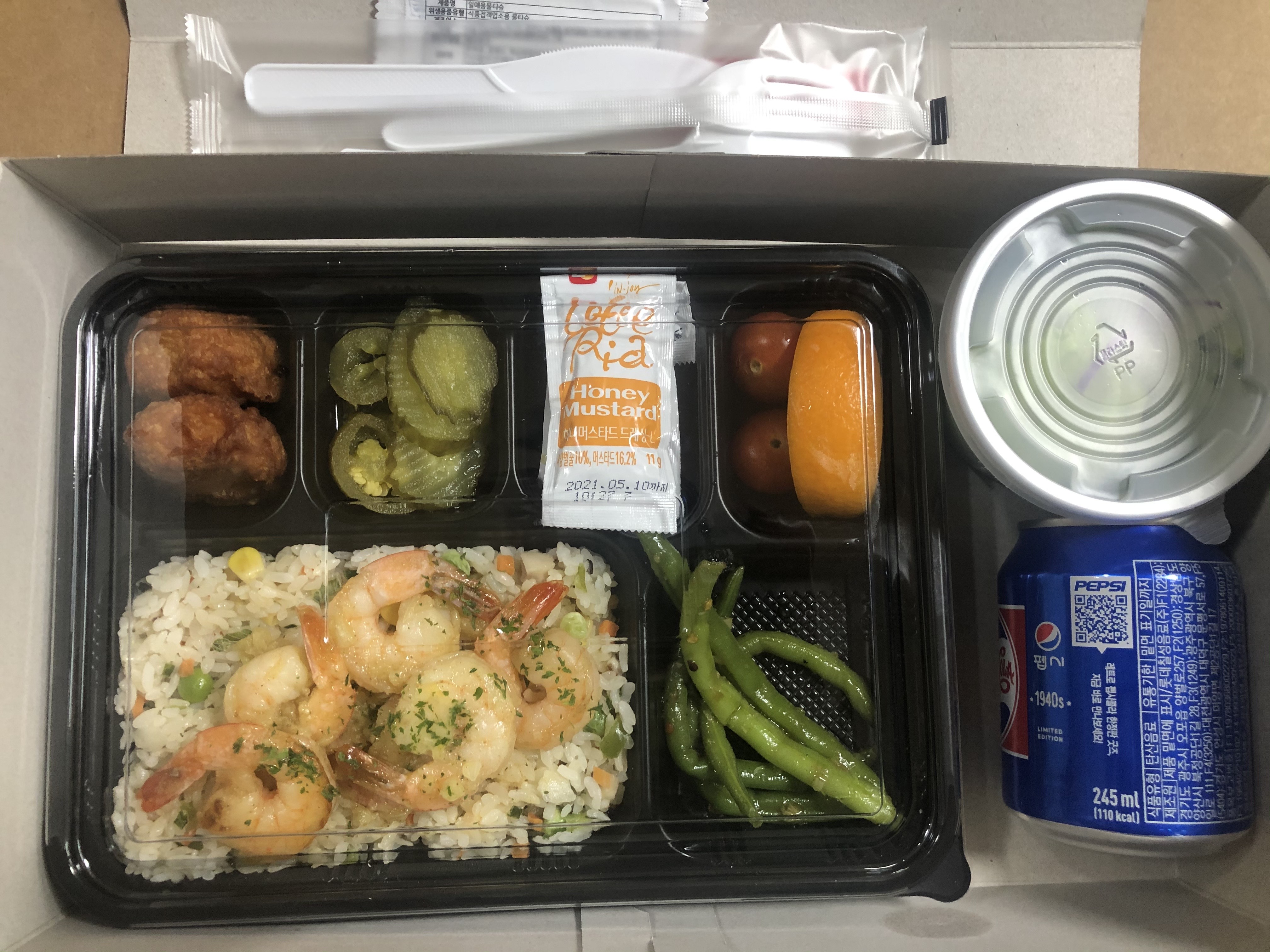 콜라, 뭔지모르는 줄기, 그리고 갈릭버터 새우 볶음밥(?)
